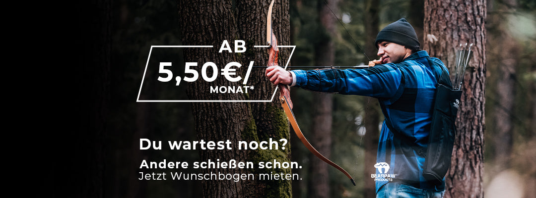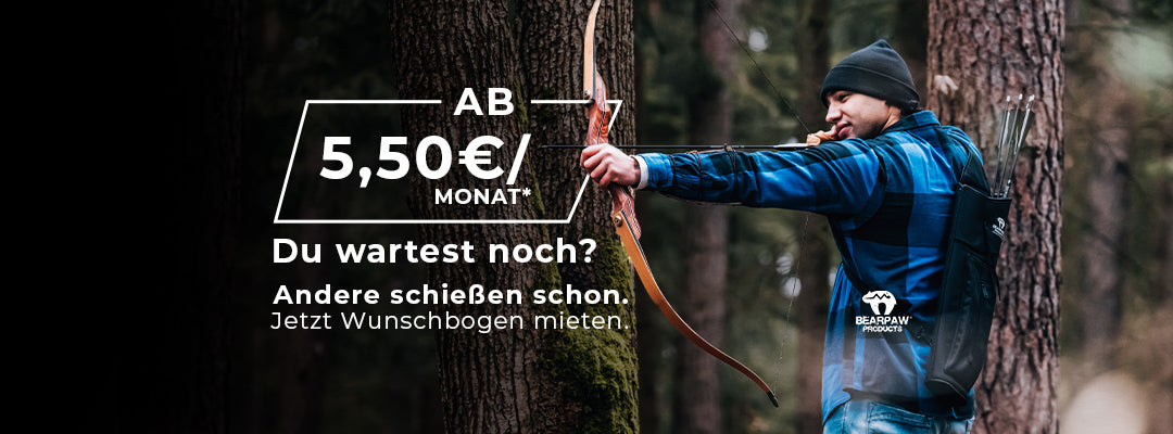 Du willst den Nervenkitzel beim Bogenschießen spüren, ohne dich gleich festzulegen? Dann miete deinen Wunschbogen bei Bearpaw Products. Ob klassischer Langbogen, vielseitiger Recurvebogen, flexibler Take-Down Bogen oder das passende Zubehör. Unser Bogenverleih bietet dir alles, was du brauchst, um direkt durchzustarten!